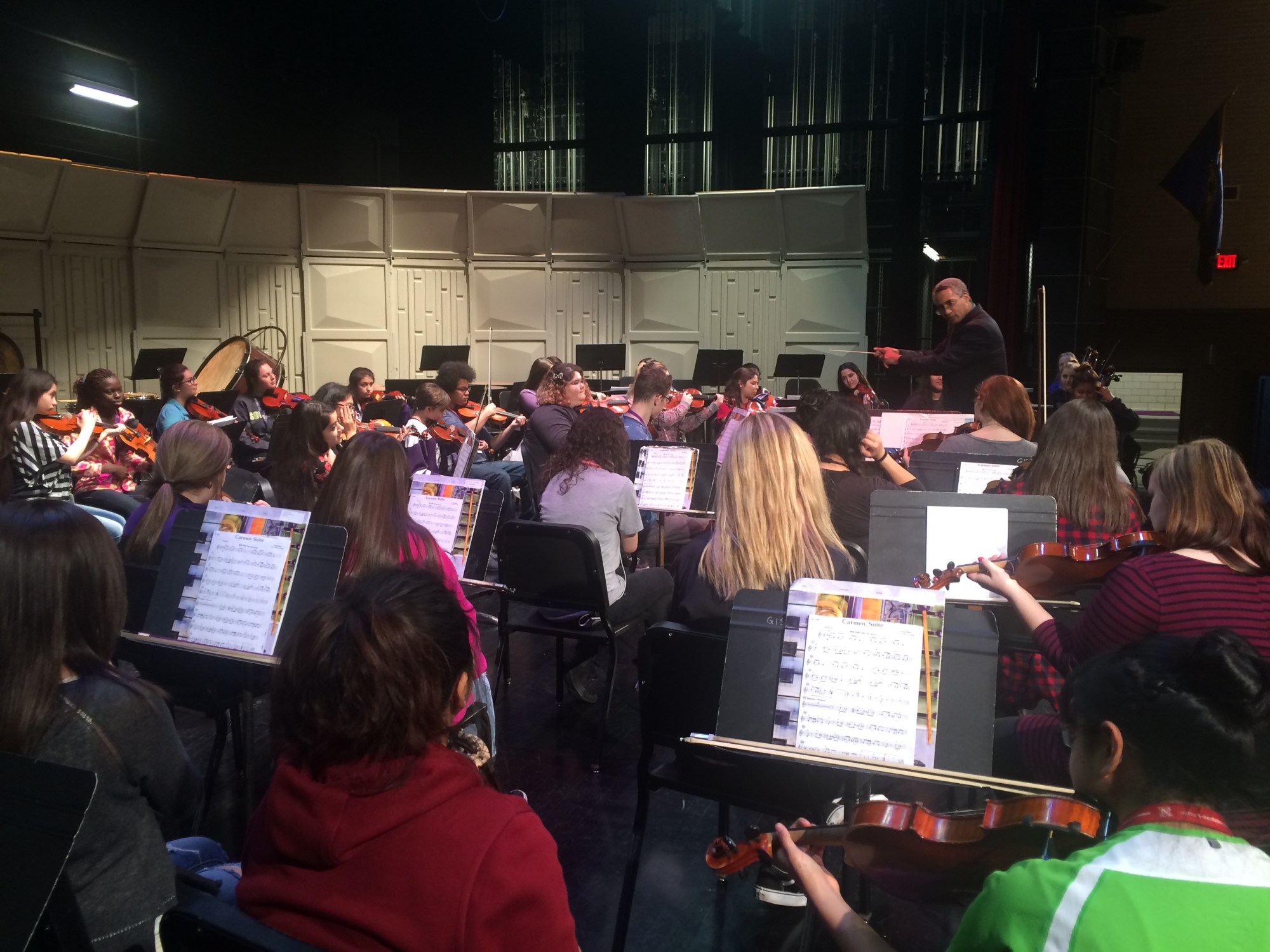 On February 19, members of the UNO Chamber Orchestra traveled to Kearney and Grand Island to visit students in four high school orchestra classes at Kearney and Grand Island High. During the visits UNO students performed for students, played with students, and took part in Q & A sessions. In addition, Professor Ford cliniced students at Grand Island High School. Despite the 4:15AM call time, students were high-spirited and excited – the day was a great success and enjoyed by all.