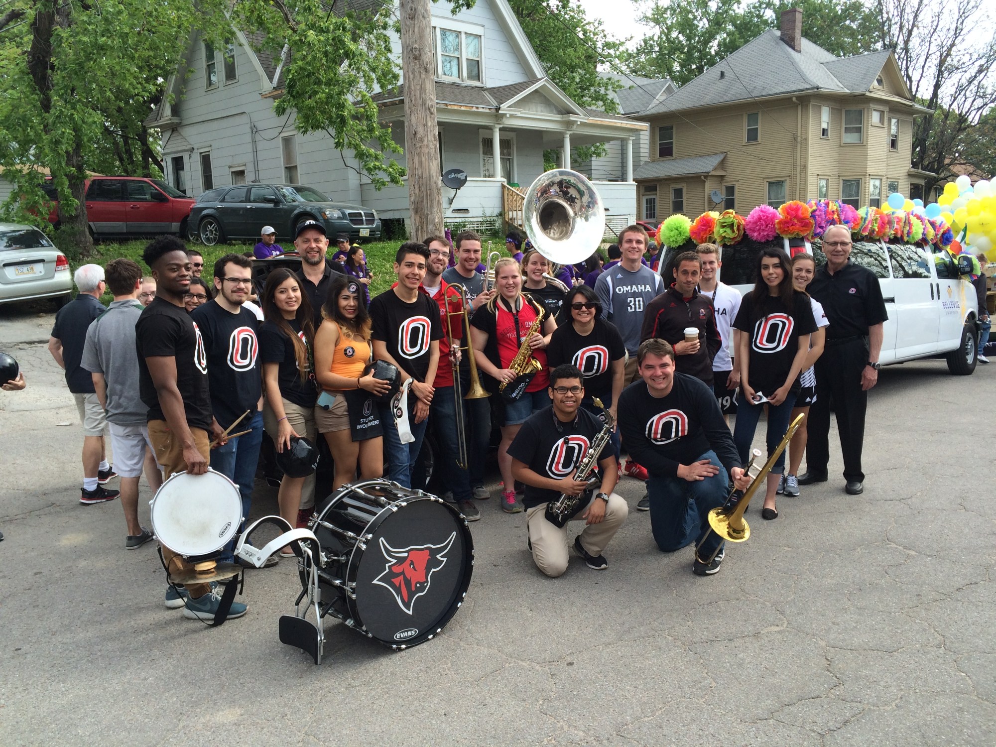 On Saturday, September 7, UNO’s Stray Horn Brass Band participated in Omaha’s annual Cinco de Mayo parade. Omaha has hosted Cinco de Mayo events since the 1930’s. This parade is among the largest of it’s type in the Midwest and the Stray Horns enjoyed an audience that numbered well into the thousands. This performance was the result of a collaboration between the UNO School of Music and the Office of Academic and Student Affairs.