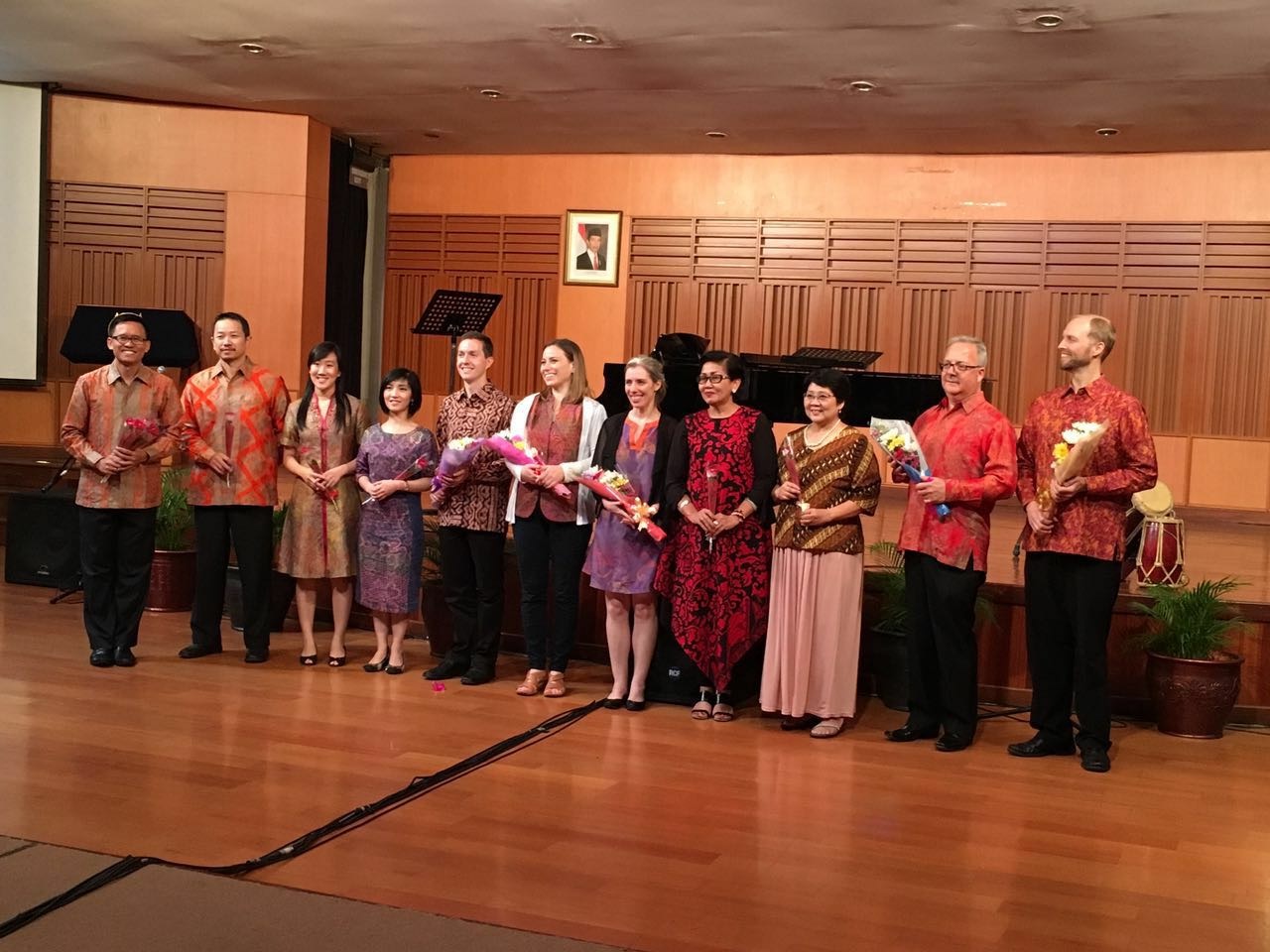 Mary Perkinson and Shelby VanNordstrand traveled to Indonesia in May to give recitals and master classes. They were joined in performance by colleagues from the University of Central Florida and Universitas Pelita Harapan. They gave master classes at Universitas Pelita Harapan in Jakarta, Indonesia, and at Sekolah Menengah Musik in Yogyakarta, Indonesia, in addition to three performances at different venues in Yogyakarta and Jakarta. The performances included Indonesian premieres of six new compositions written by Universitas Pelita Harapan faculty Johannes Nugroho and Antonius Priyanto. The funding for this collaboration was made possible through a FRI (Faculty Research International) Grant from the UNO University Committee on Research and Creative Activity.