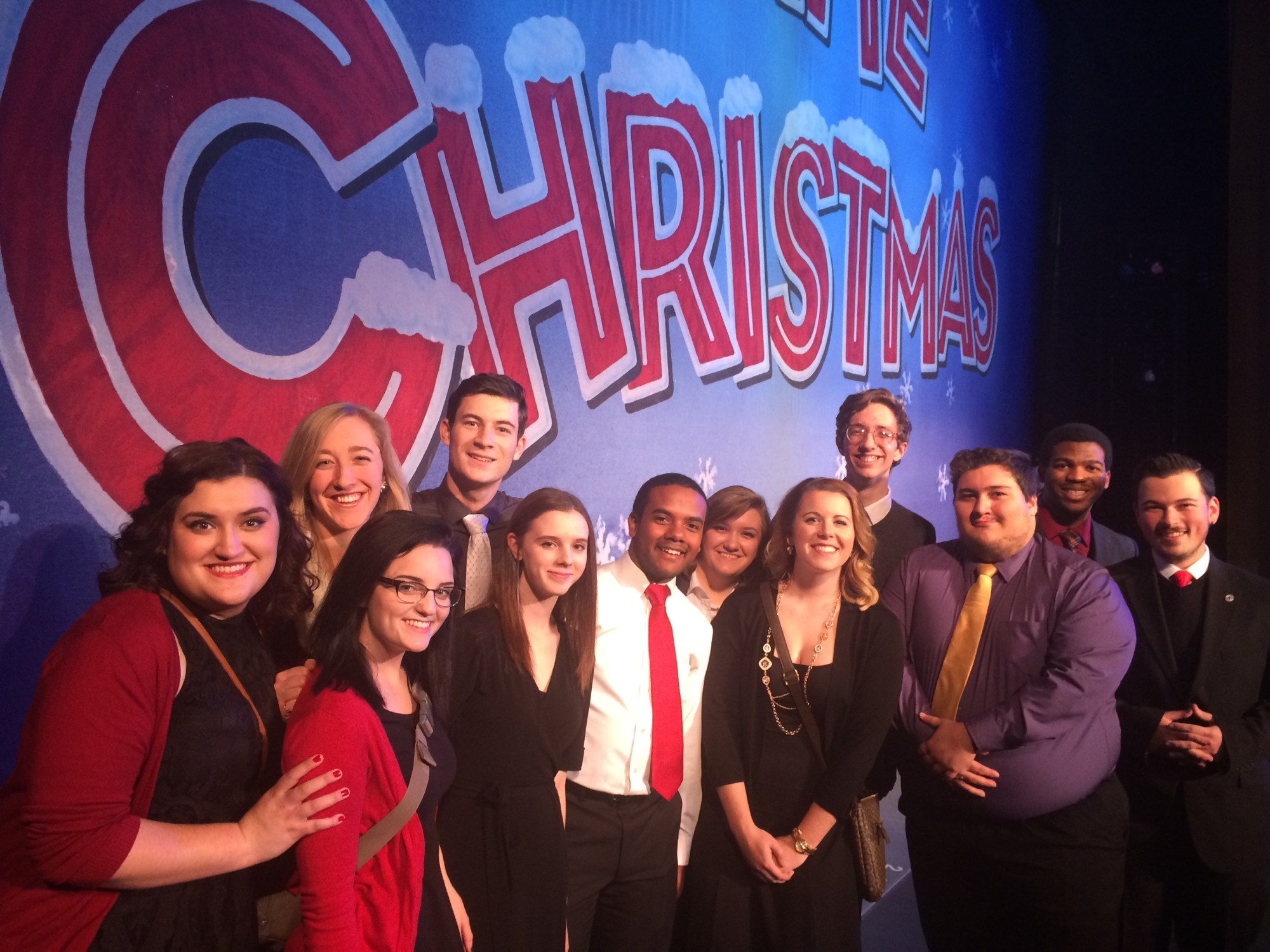On Wednesday, November 16th, members of the UNO Concert Choir, under the director of Dr. Derrick Fox, Director of Choral Activities, performed the National Anthem at the Orpheum Theatre prior to performance of the Broadway tour of White Christmas. The National Anthem was performed on this evening in conjunction with Omaha Performing Arts Heroes’ Night.