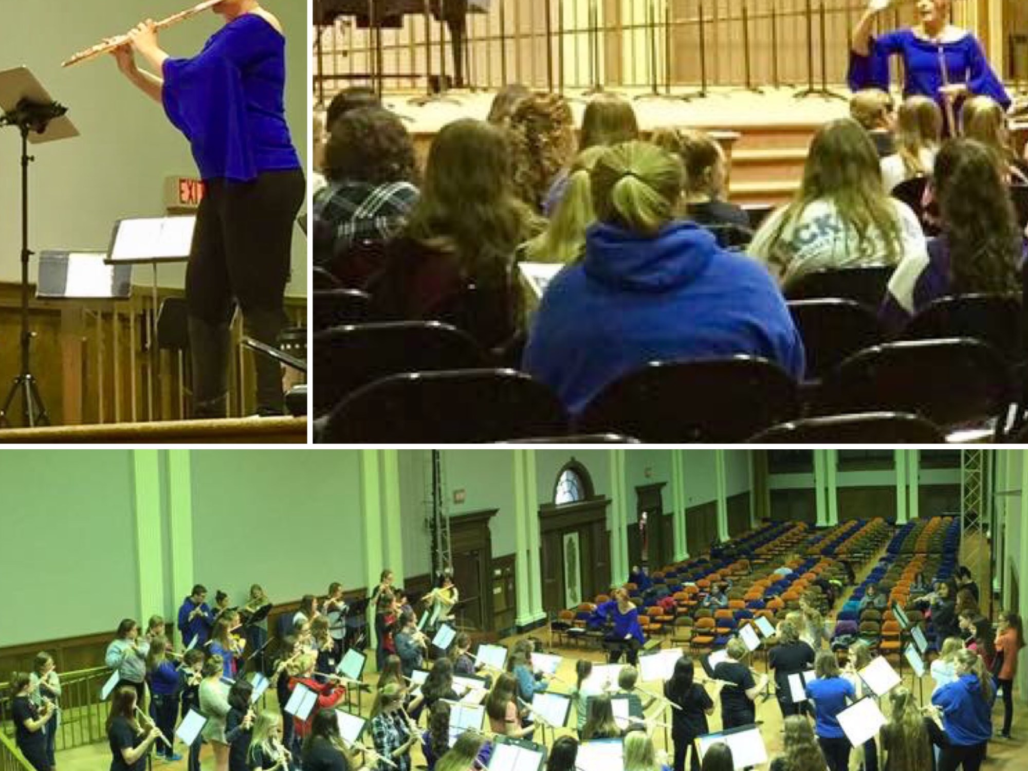 UNO Professor of Flute, Dr. Christine Beard recently served as the guest artist for South Dakota State University’s Flute Day 2017, where she worked with over 80 middle school and high school student flutists as well as local band directors in a series of flute ensemble rehearsals and clinic sessions. The day concluded in a recital performance given by Beard and host flutist Dr. Tammy Yonce (SDSU), as well as the festival participants performing two flute choir works, conducted by Beard.