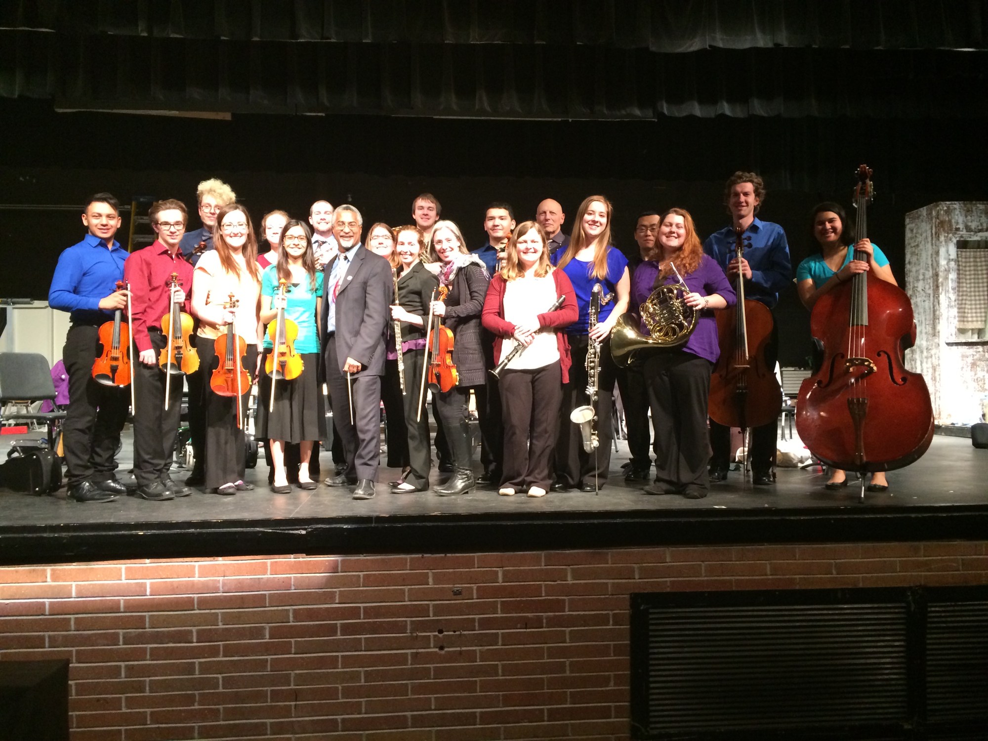 On April 4, 2017, members of UNO’s Chamber Orchestra, led by Professor Barry Ford and Dr. Mary Perkinson, visited Norfolk and Freemont High Schools. During the visit, the orchestra performed works by Britten and Bach, and the undergraduate string quartet performed a movement from Haydn’s “Bird” quartet. UNO students and faculty also engaged in a Q & A for high school students. The tour was a great success and we look forward to returning soon!