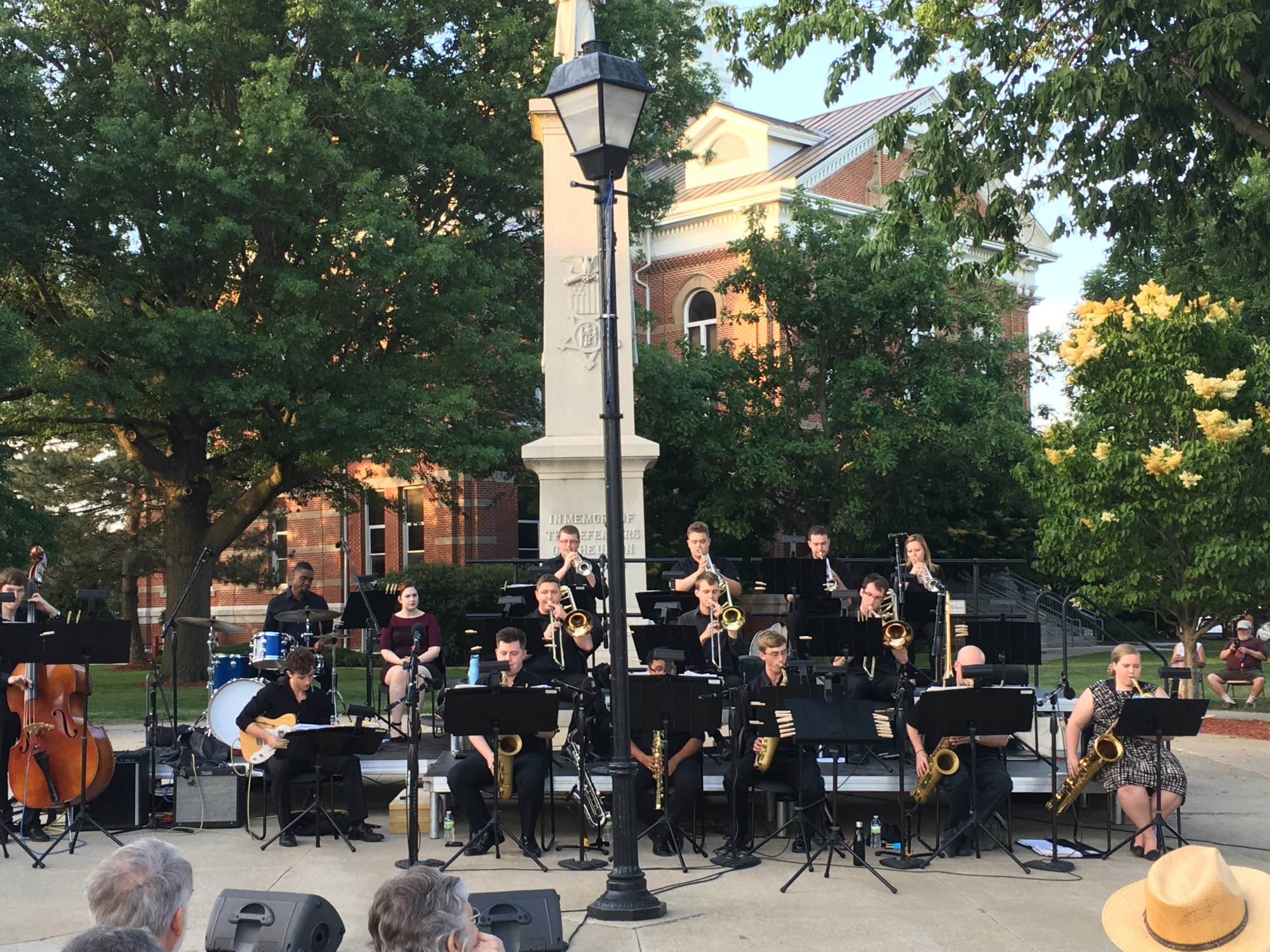 On June 8 the UNO Jazz Ensemble performed in Clarinda, Iowa for the 42nd annual Glenn Miller Festival sponsored by the Glenn Miller Birthplace Society. The ensemble received a standing ovation for their performance which consisted of big band classics, modern compositions and arrangements, and of course plenty of Glenn Miller! Other ensembles at the festival included professional bands from around the country and an ensemble from Japan. The UNO Jazz Ensemble was the only collegiate group invited to perform at the festival.