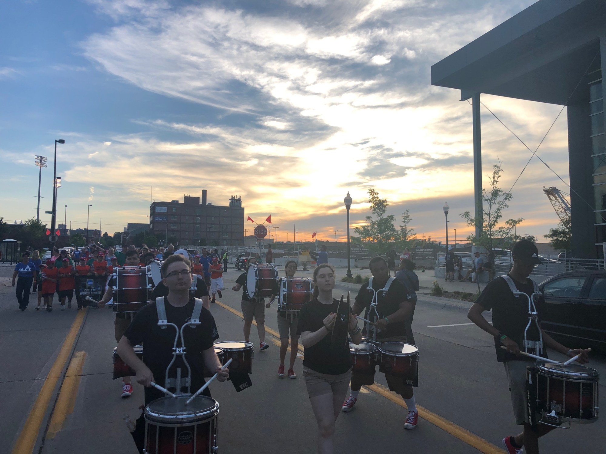 “UNO’s entertainment drumline, The Herd had the honor once again to lead the parade for the opening of the 2019 College World Series. The Herd enthralled fans and players alike as they led the procession from the team BBQ at Morrison Stadium, down Mike Fahey Blvd and right into TD Ameritrade Park for the opening ceremonies. “