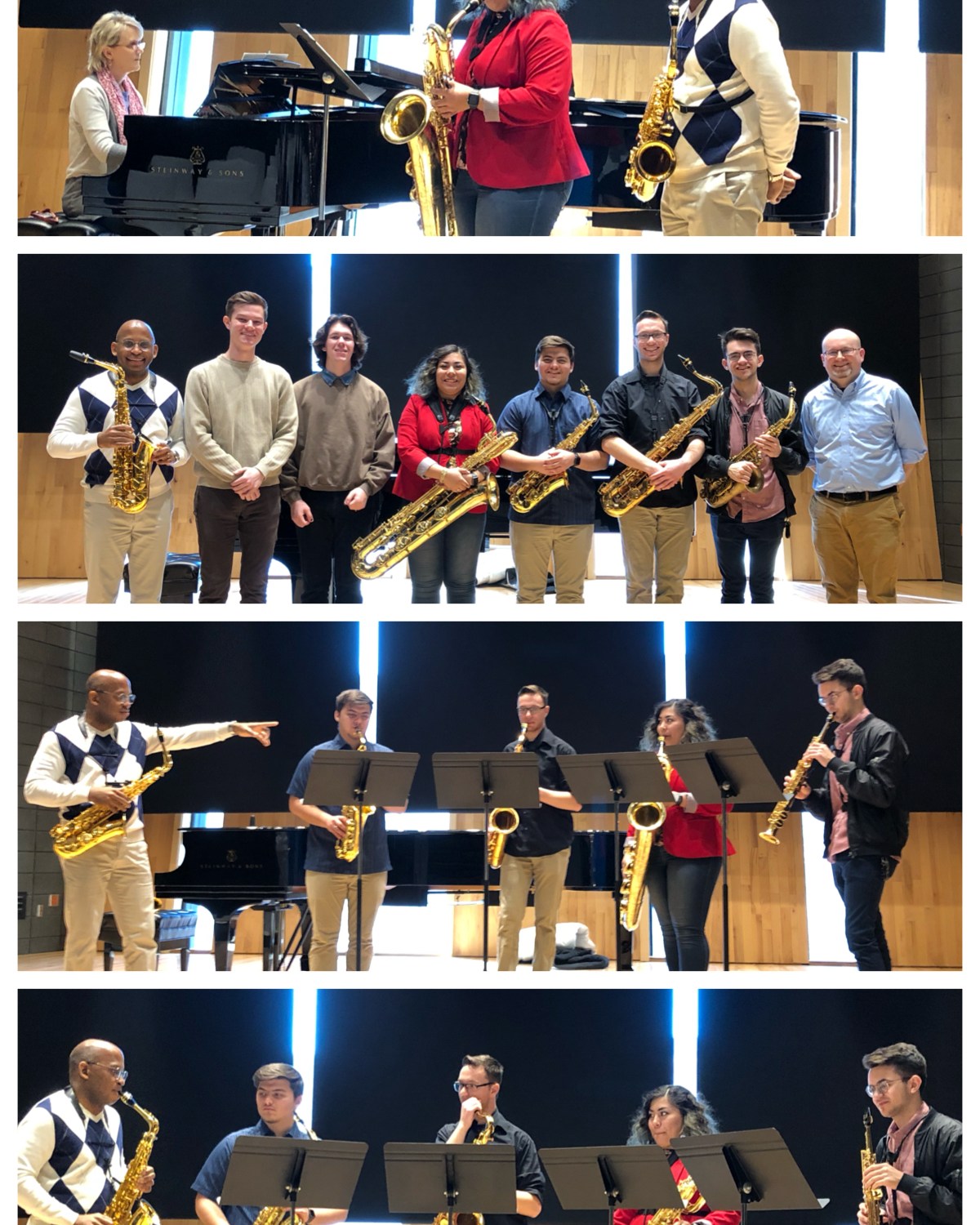 Students from the UNO saxophone studio recently worked with Dr. Otis Murphy, Professor of Saxophone at Indiana University in a masterclass. Dr. Murphy performed as a part of the UNO International Concert Series and it was an amazing opportunity for the students to learn from him! Thank you to Dr. Murphy, Haruko Murphy, and UNO collaborative pianist, Stacie Haneline.