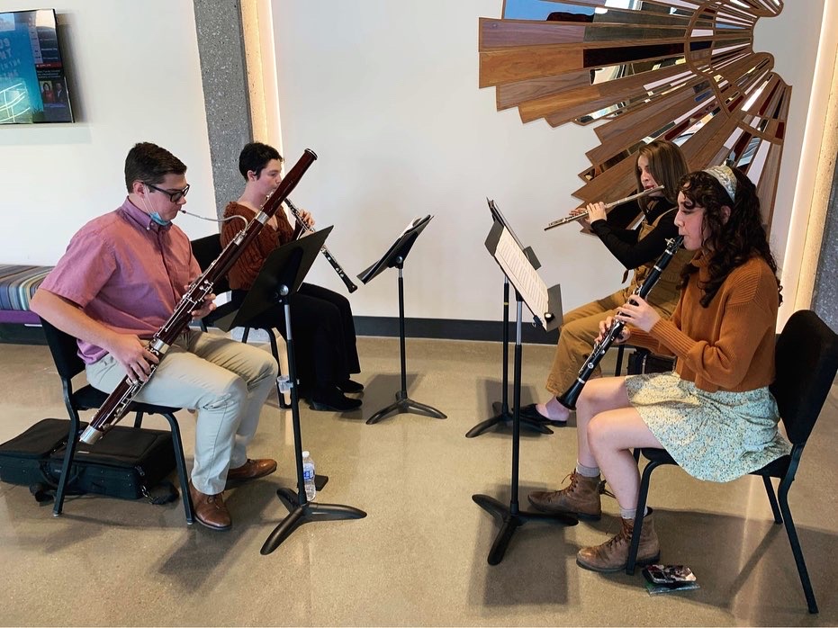 Coached by Dr. Christine Beard, FourOmaha was founded in 2018 and consists of members Dakota Valle, flute; Christine Robino, oboe; Myra Coveney, clarinet; and Hunter Holoubek, bassoon. All four are music education majors at UNO, and the ensemble will become a trio in Spring 2022 as Hunter will be the first to student teach. Their final performances as a quartet will be a series of holiday concerts at local venues in December.