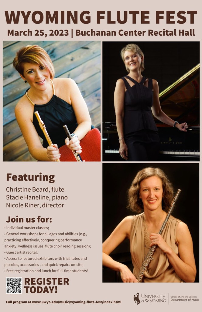 Dr. Beard also conducted flute/piccolo masterclasses at both campuses, and the Duo served as the guest artists for the Wyoming Flute Festival which attracted flute students from across the region.