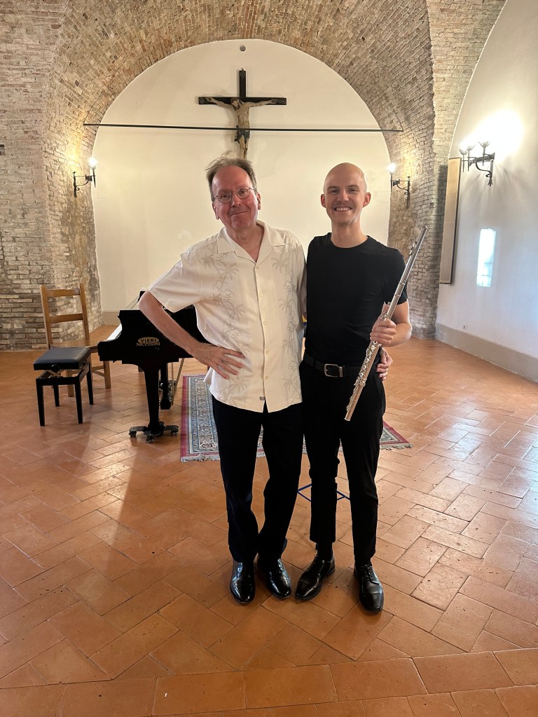 Freshman UNO flute performance student, Jay Fox, was honored to be a participant at “Flauti al Castello” in Perugia, Italy in August 2023. This nine-day intensive flute seminar was held by flutists Sergio Pallottelli, the flute professor at the Conservatorio Vivaldi (Italy), and Paul Edmund-Davies, former principal flute of the London Symphony Orchestra.