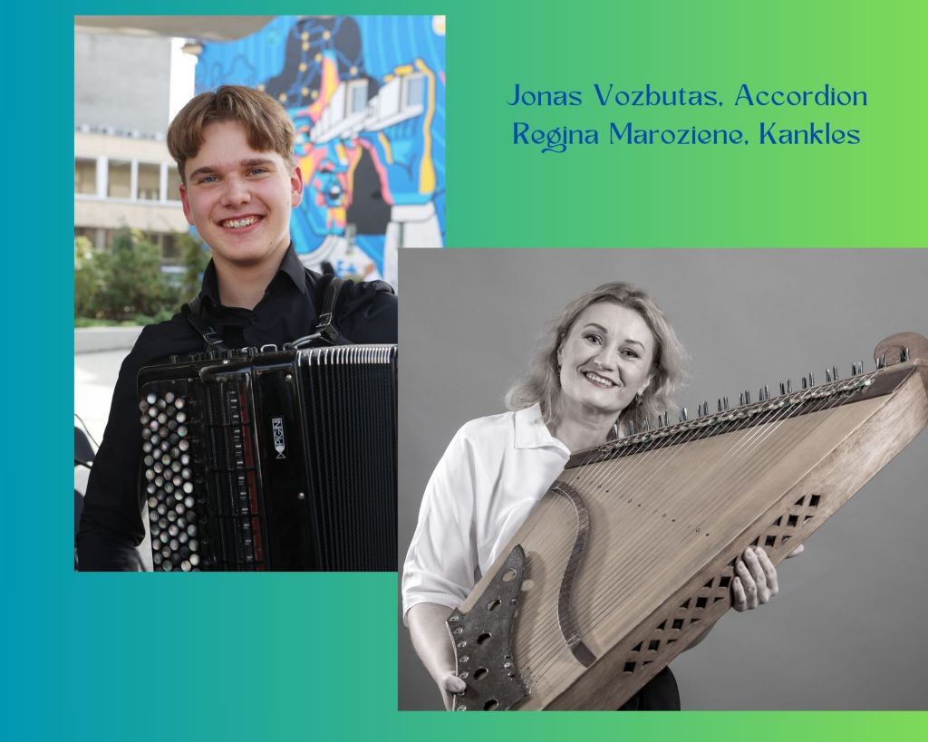 Šiauliai Saulius Sondeckis Gymnasium of Arts Principal Regina Maroziene (Kankles) and rising star Jonas Vozbutas (accordion) present a performance of traditional Lithuanian Folk Music joined by UNO alumna Jurgita (Tuckete) Kalb (voice) and members of UNO’s Choral Program under the direction of Dr. Dalan Guthrie. Join us for this free concert sponsored by Omaha Sister Cities Association, UNO Music, OSCA Friends of Siauliai Committee and the Omaha Lithuanian-American Community.