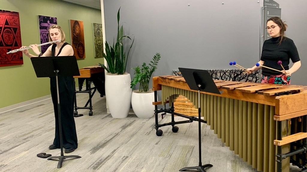 INCANDESCENT (flutist Claire James and percussionist Dana LeVan) has been accepted to perform at the 52nd National Flute Association Convention, to be held in San Antonio, TX in August 2024. The duo will present a lecture-recital to discuss and perform works they have commissioned as part of their “Friends of the Lakota Music Project.” Claire is a 4th semester graduate student at UNO studying with Dr. Christine Beard, and Dana graduated from UNO in 2023 with her MM in percussion under the tutelage of Dr. Hannah Weaver.