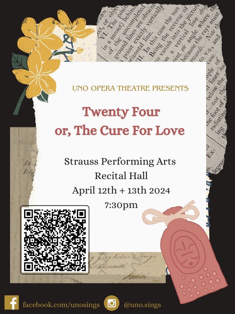 Experience the captivating world of love, betrayal, and mysterious potions as the UNO Opera Theater presents “Twenty-Four, or the Cure for Love.” Join us on April 12th and 13th at 7:30 PM for an unforgettable performance that will transport you into a realm where emotions run high and secrets unravel. Don’t miss this opportunity to witness the enchanting melodies and dramatic storytelling brought to life by our talented performers. Reserve your seats at UNO School of Music Events and immerse yourself in a night of unforgettable opera at UNO.