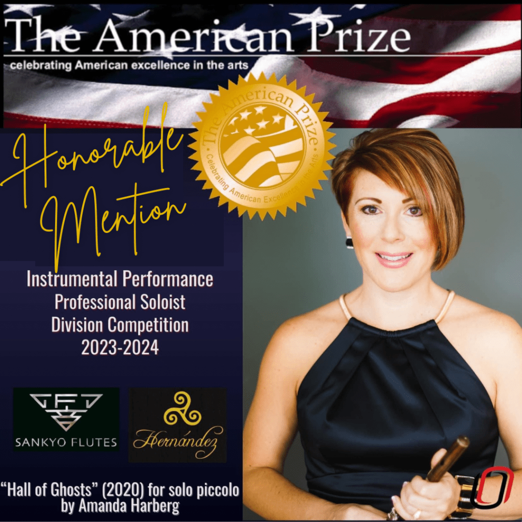 UNO Professor of Flute, Dr. Christine Beard, has been awarded Honorable Mention in the 2024 Professional Soloist Division of the prestigious American Prize Competition for her performance of “Hall of Ghosts” (2020) for solo piccolo by American composer Amanda Harberg. Open to all professional instrumentalists without age limit, the American Prize celebrates excellence in the arts through a series of non-profit, national competitions recognizing and rewarding America’s finest performing artists, ensembles and composers.