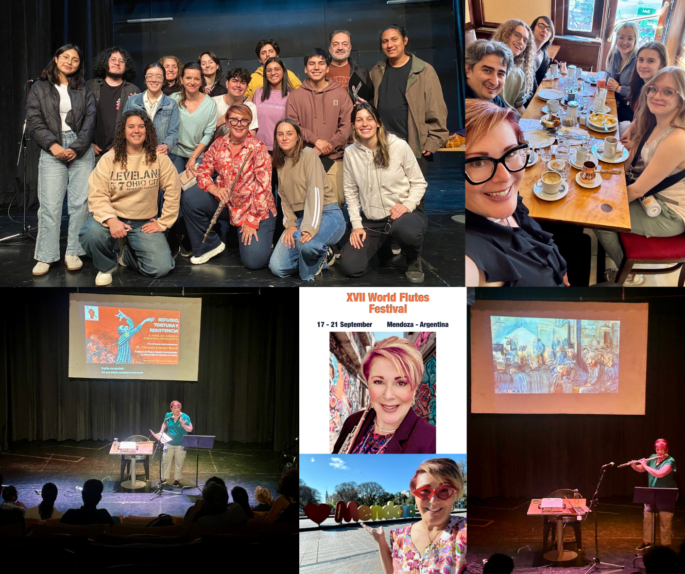 In September 2025, Dr. Christine Beard made her sixth appearance at the Festival Flautas del Mundo in Mendoza, Argentina, where she was invited to present her lecture-recital, “The Role of Music During the Holocaust,” and to teach a piccolo masterclass for flute students at the Universidad Nacional de Cuyo. During the festival, she also conducted the UNO Flute Studio in their ensemble performances.