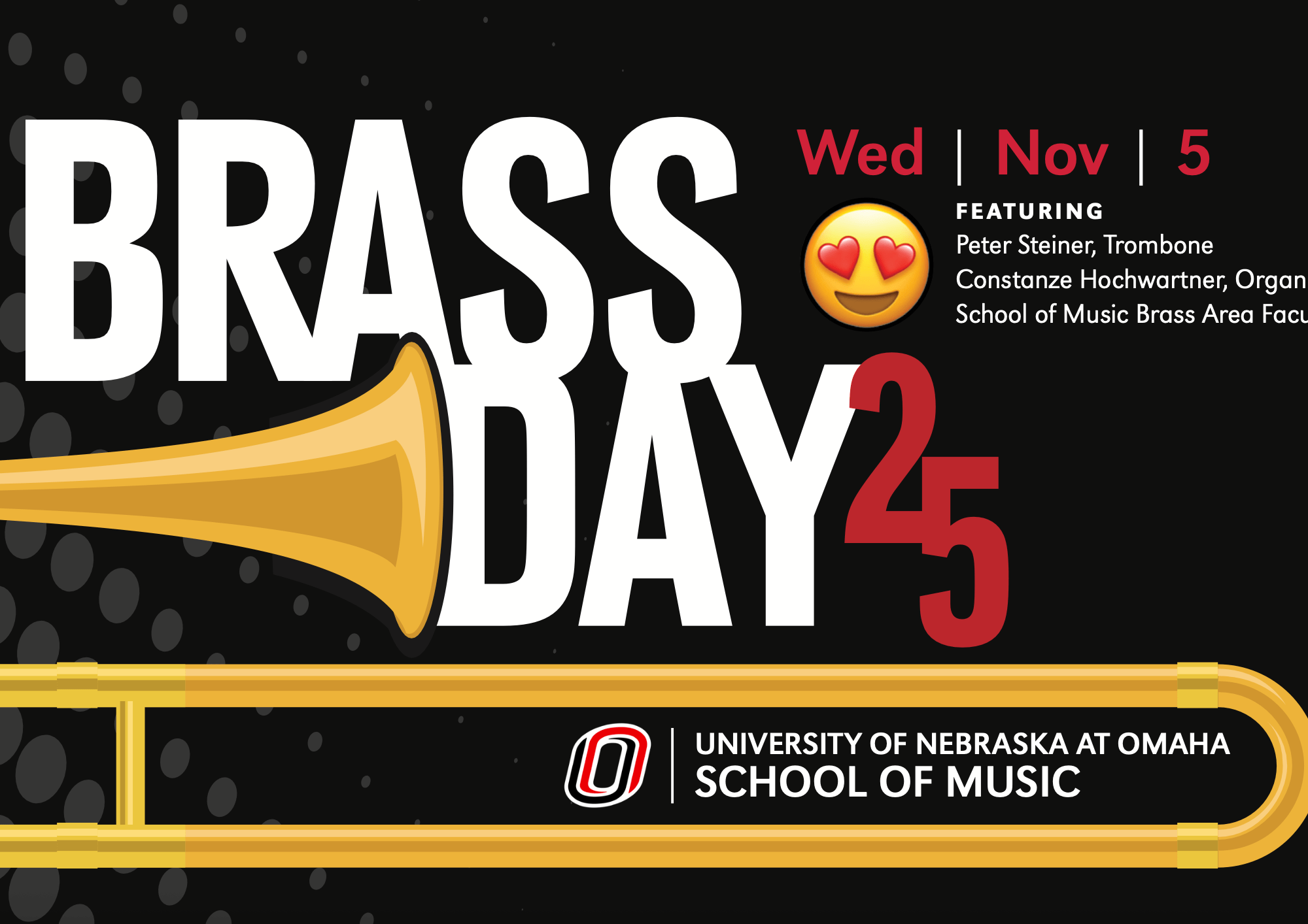 This year’s event will take place on Wednesday, Nov. 5, 2025 in the Strauss Performing Arts Center on the campus of the University of Nebraska at Omaha. Brass Day attendees participate in masterclasses with guest artists, attend recitals, engage with UNO Brass Area faculty, and join other Brass Day participants, guest artists, and UNO students in a joint performance in the evening. We are thrilled to host the internationally renowned trombonist, Peter Steiner. Joining him in collaboration with be the great Austrian organist, Constanze Hochwartner. Peter and Constanze will be featured in recital during the evening portion of the event.