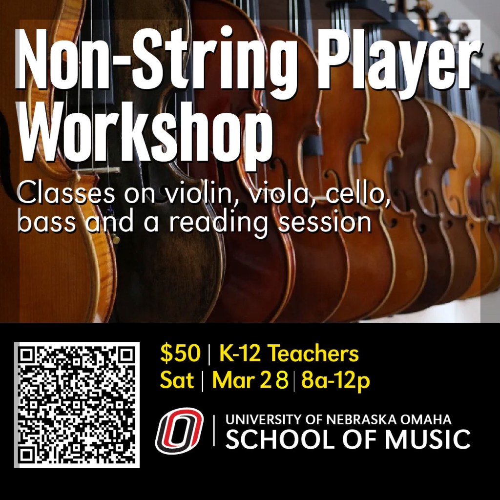 Calling K12 teachers & current music education students. Refine your left & right hand skills during classes taught by UNO School of Music faculty. Learn basic bow strokes, the nuts & bolts of good intonation, beginning vibrato & shifting. Participants will choose up to 3 classes (violin, viola, cello, double bass), followed by a reading session. Free for students! https://forms.office.com/r/dn7gTjwfhm
